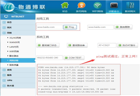 联网方式只能三选一,不能同时选择两种。网关设置为拨号方式(4G/3G上网模式),系统会启动无人值守看护程序,如果发现没有插卡、没接天线、手机卡欠费会进入诊断模式,会重启网络,所以调试过程如果不用4G/3G上网,请先关闭拨号网络。