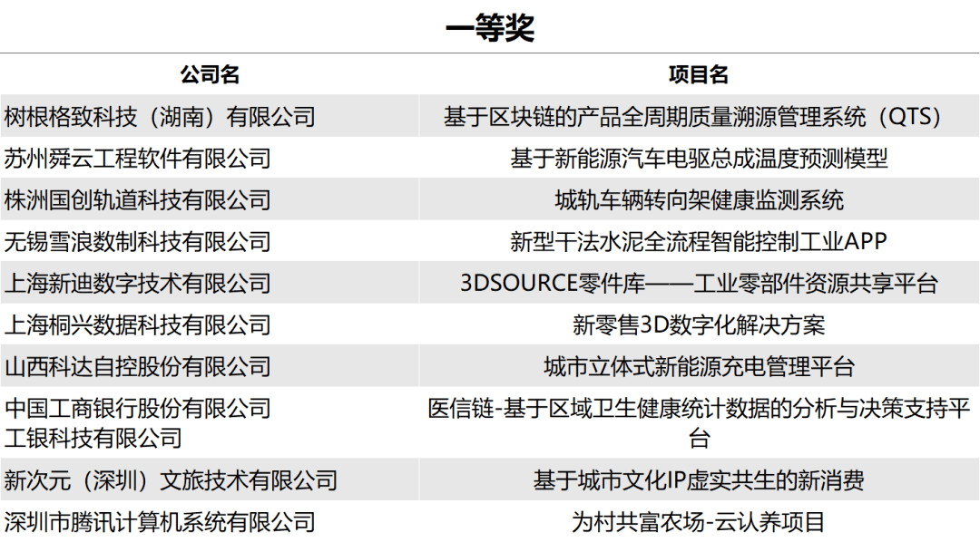 以下是获奖名单:
