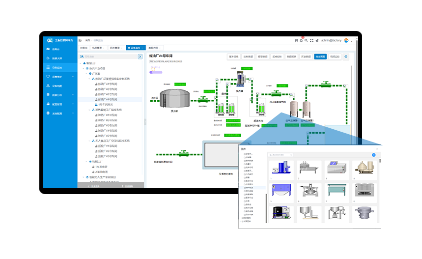 顺利获得将网关的数据接入到合乐HL8 合乐工业数据云平台,可以实现对机器人的数据进行远程监控,顺利获得平台的组态功能可以自由绘制组态监控画面,实现电脑端和手机端的设备运行状态和工艺流程的可视化组态监控。