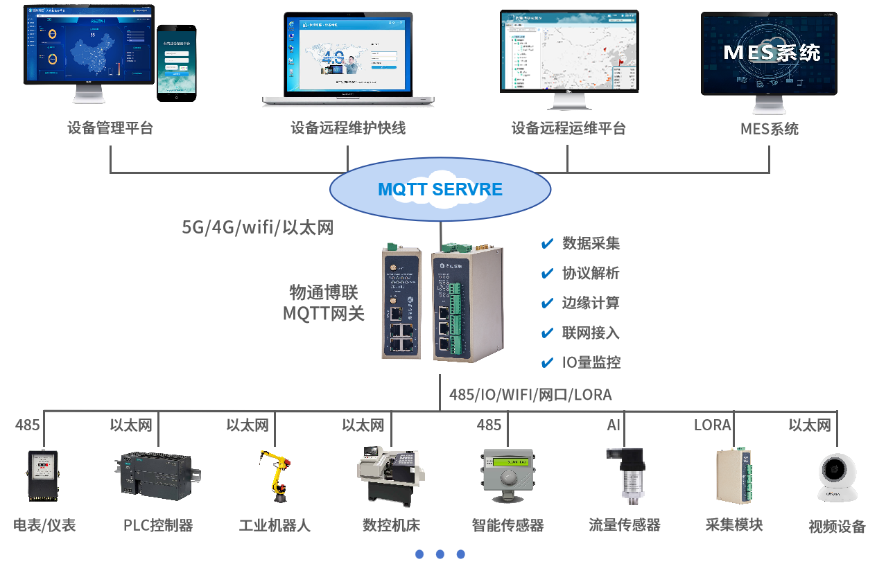支持5G\4G\WIFI\以太网等方式,实现设备联网、设备远程通讯,满足各种不同的工业应用场景